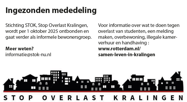 STOK is een stichting die wil dat er een einde komt aan de woonoverlast in Kralingen. De laatste tien jaar is die overlast zo toegenomen, dat de situatie nu echt onhoudbaar is. Veel inwoners proberen daar iets aan te doen; zij spreken de overlastgevers aan op hun gedrag, bellen de wijkagent, de politie of nemen contact op met de gemeente.